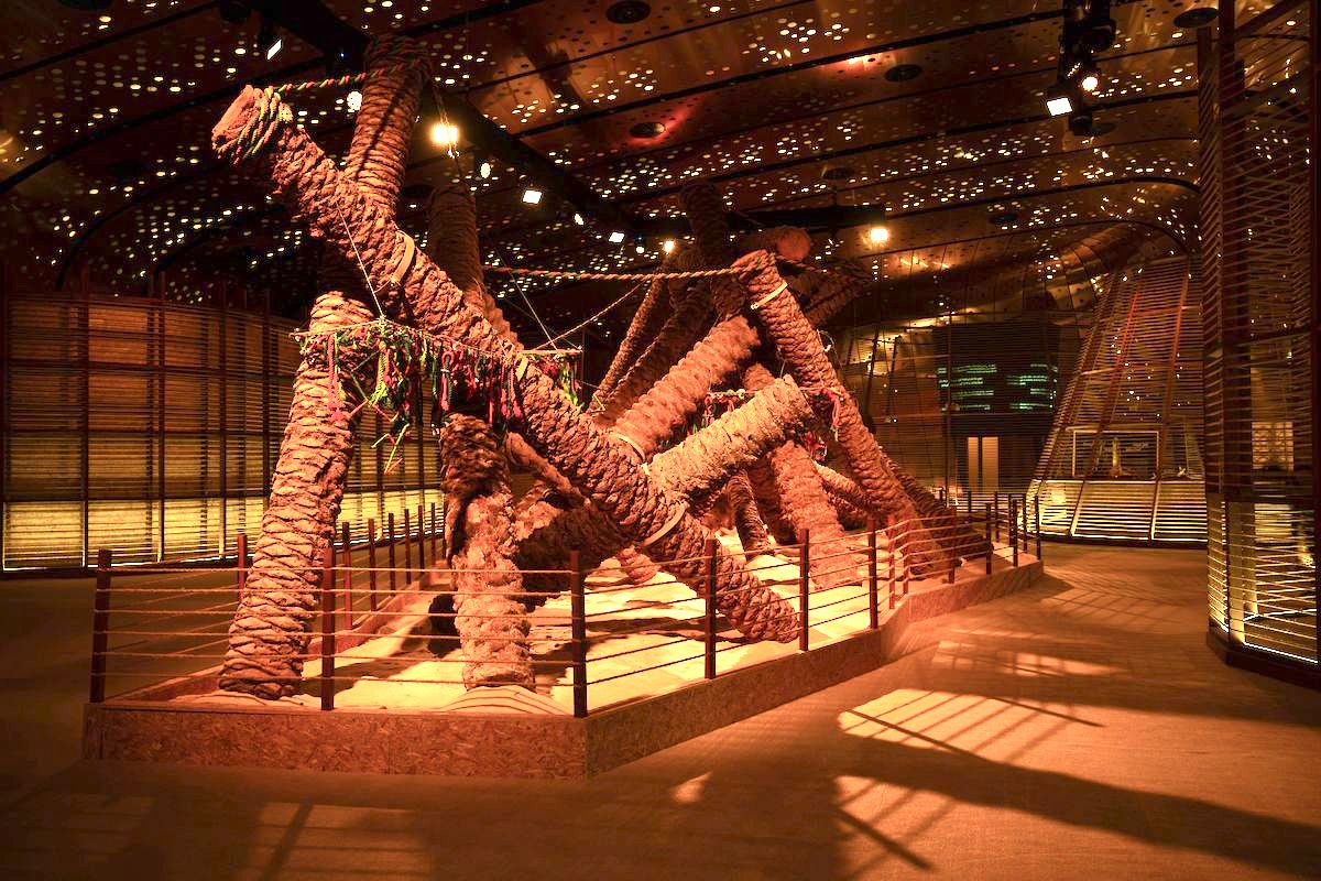 ويضم المعرض 15 عملًا فنيًا لـ 25 فنانًا من داخل المملكة وخارجها، بإشراف القيّمين الفنيين “سامر يماني” و”رزان مصري”، في تجربة فنية تستكشف حضور النخيل في الذاكرة، وتعيد قراءتها من منظورٍ جمالي يجمع بين الفن والتراث وبين الماديّ والرمزيّ، إذ يعكس تصميم المعرض دلالات متعددة من خلال فضاءات فنية تتداخل فيها عناصر النخلة من خشبٍ وحبالٍ وليف، لتصوغ مشهدًا بصريًا يشبه العريش الذي يظلل الذاكرة.