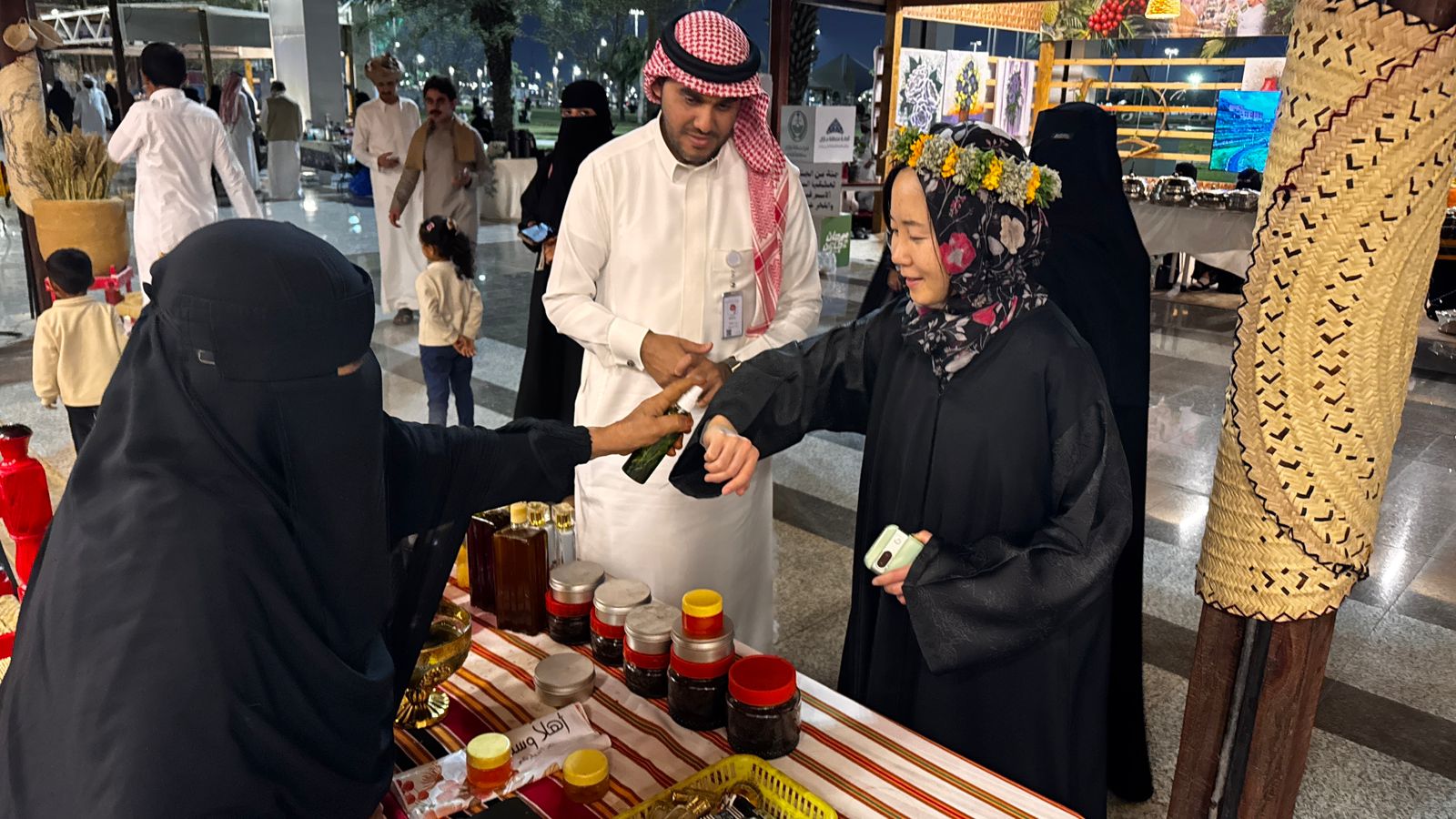 وفور وصول السائحة للجناح، كان في استقبالها القائمون على الركن الذين قدموا لها شرحاً وافياً عن تاريخ محافظة صبيا، ومكانتها الجغرافية والاقتصادية. وقد تجولت الزائرة بين أركان الجناح التي ضمت: المشغولات اليدوية: التي تعكس مهارة إنسان صبيا في الحرف التقليدية و الأزياء الشعبية: حيث تعرفت على أنواع الملابس التراثية وأدوات الزينة القديمة و