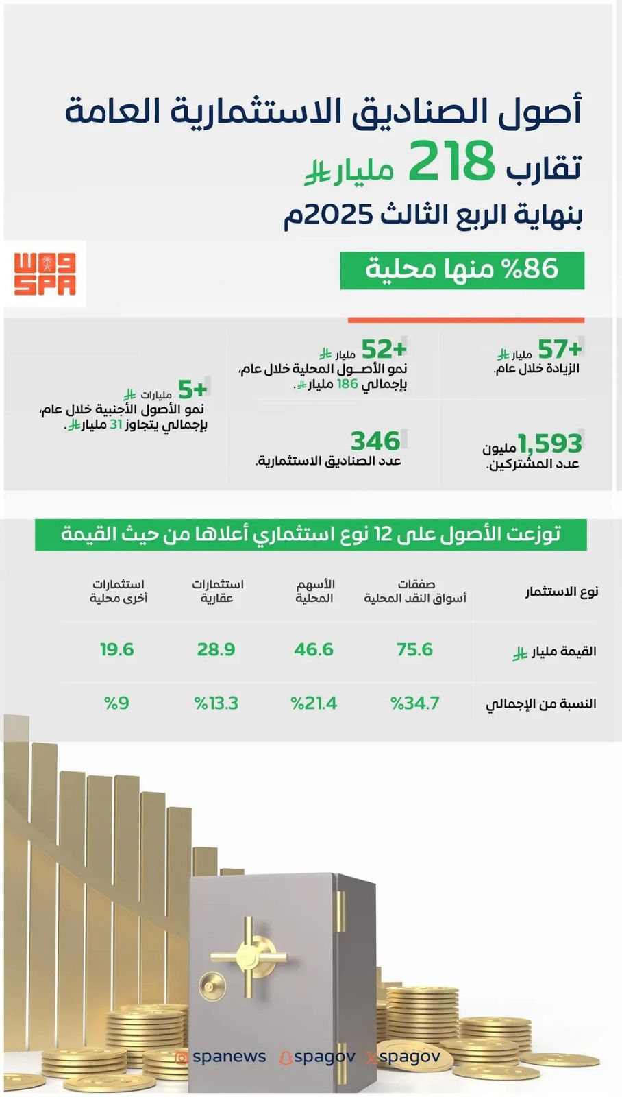 أصول الصناديق الاستثمارية العامة تقارب (218) مليار ريال بنهاية الربع الثالث 2025م