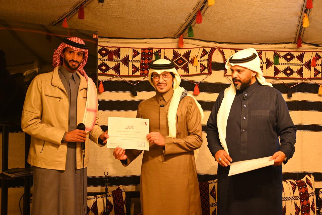 ثم كرَّم رئيس سفارة جمعية الادب المهنية بالباحة توفيق محمد غنام ضيف الامسية القاص أحمد الخثيمي ومدير الأمسية علي الصافي ، كما قدم لهما درعين تكريميين من الشريك الادبي مقهى بوكا .