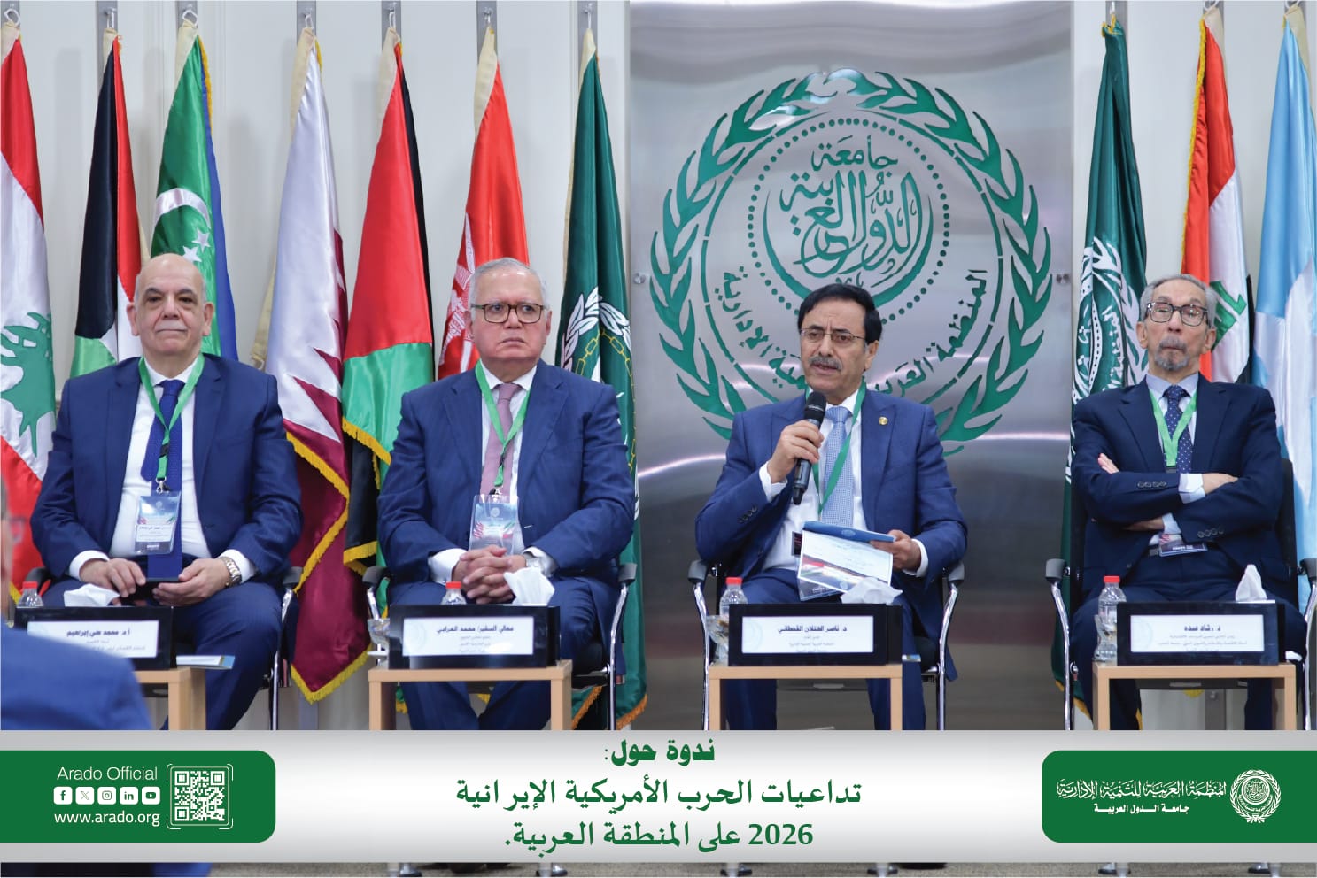 المنظمة العربية للتنمية الإدارية تناقش تداعيات الحرب الأمريكية- الإيرانية على المنطقة العربية اقتصاديا واستراتيجيا اليوم في ندوة، بالقاهرة